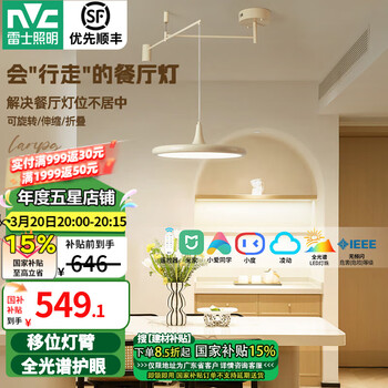 旗舰店雷士(NVC)奶油现代护眼智能全光谱摇臂可移动吊线餐厅吊灯餐桌吧台灯灯具 米色50瓦 全光谱摇臂款