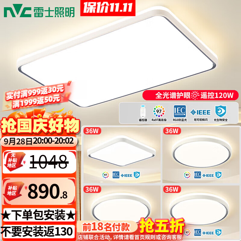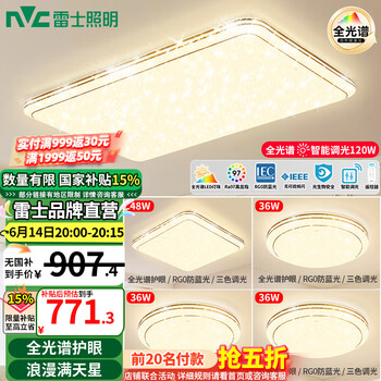 旗舰店雷士(NVC)升级加亮led吸顶灯全光谱护眼客厅大灯现代简约卧室餐厅全屋灯具 力荐【4室1厅】护眼全光谱