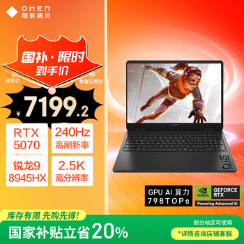 自营惠普暗影精灵11游戏本笔记本电脑 国家补贴(R9 8945HX RTX5070 32G 1TBSSD QHD240Hz)
