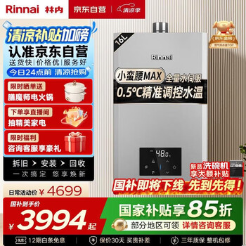 自营林内(Rinnai)【小蛮腰Max】16L燃气热水器【家电国家补贴15%】 水伺服恒温 0.5℃调温 16GD72(JSQ31-GD72)