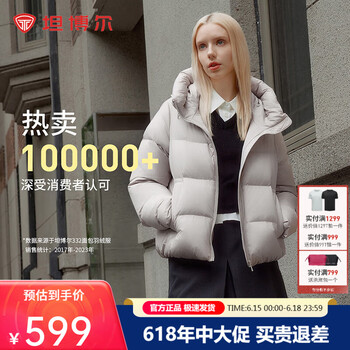 旗舰店坦博尔秋冬新款羽绒服女短款面包服连帽简约外套TBF330332J 玫瑰灰 M (165)