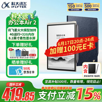 科大讯飞智能办公本Air2pro墨水屏电纸书笔记本8.2英寸阅读器搭载星火认知大模型会议记录电子书 【京仓速发】办公本Air2丨经典黑