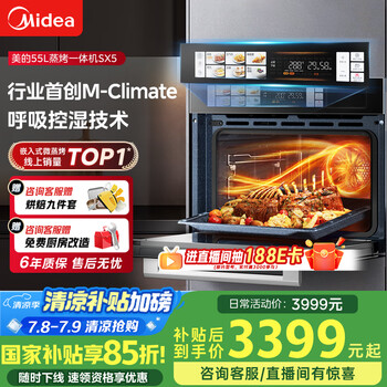 自营美的无边系列55L嵌入式蒸烤箱一体机 温湿智控 涡轮热风 蒸箱烤箱 蒸烤炸炖4合1体机SX5