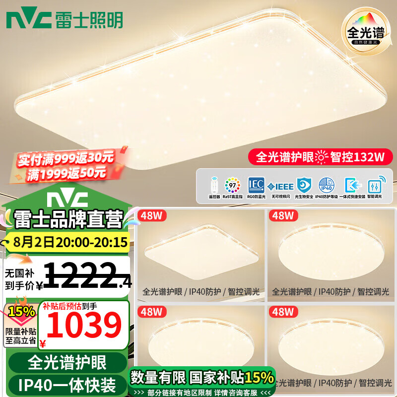 旗舰店雷士(NVC) LED吸顶灯智能全光谱护眼客厅灯现代简约轻奢全屋灯具 满天星 荐【智能全光谱】四室一厅