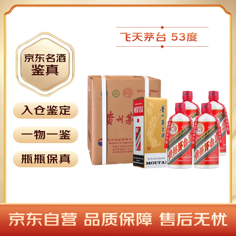 自营茅台(MOUTAI)2025年 飞天 酱香型白酒 53度 500ml*4 整箱装【名酒鉴真】