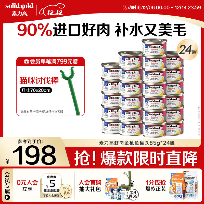 自营素力高(SolidGold)进口主食级猫罐头湿粮成猫幼猫 虾肉金枪鱼高肉量美毛补水 85g*24