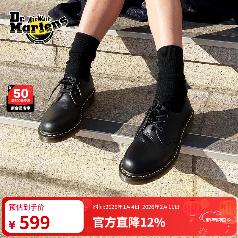 旗舰店马丁博士(Dr.Martens)1461 Vegan 秋新款爆款百搭通勤时尚皮鞋 黑色 38