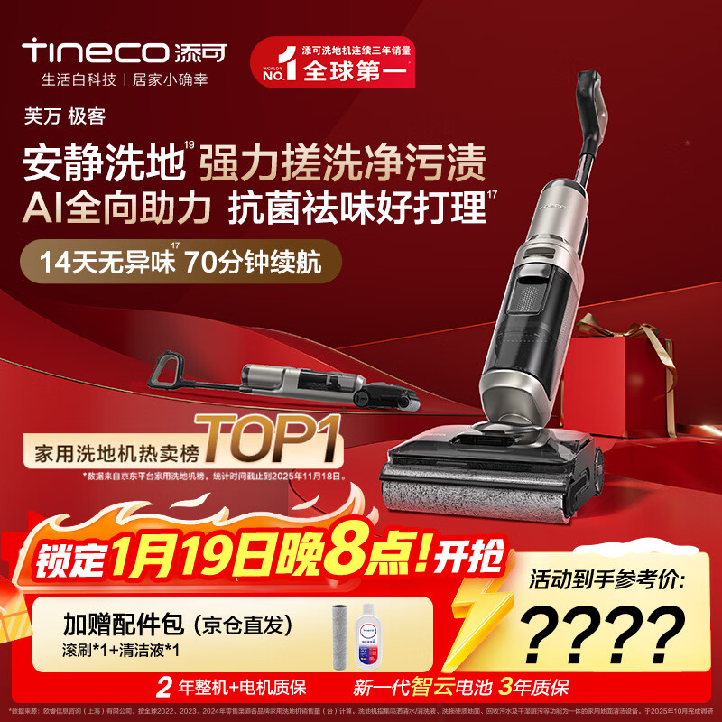 自营添可芙万极客AI全向助力【净顽渍 14天无异味 安静洗】0缠毛躺平洗地机吸拖一体扫地机器人国家补贴