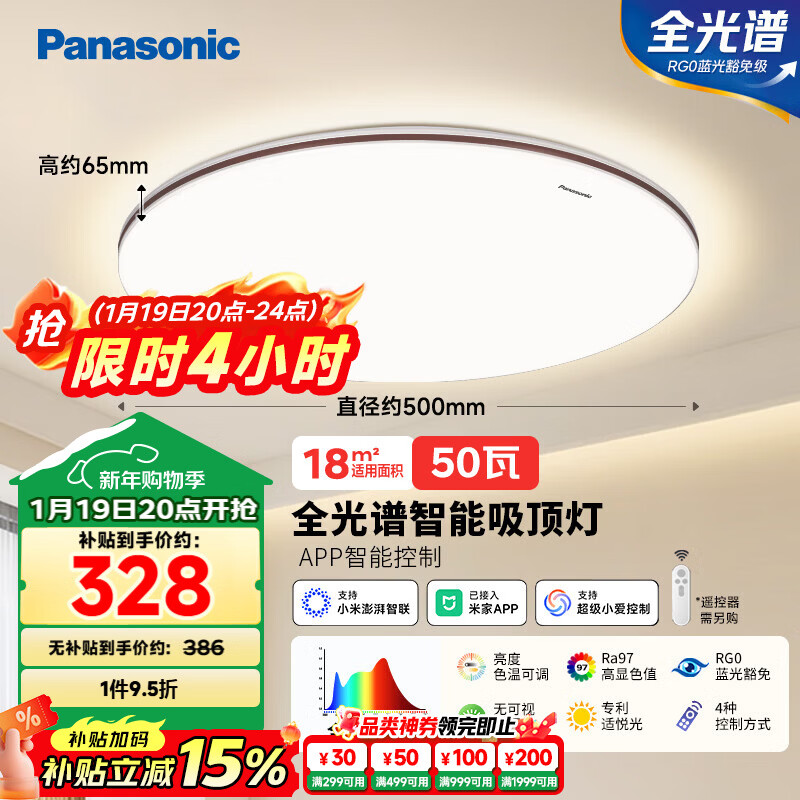 自营松下(Panasonic)吸顶灯 全光谱 IP40 智能护眼 掠影四室一厅
