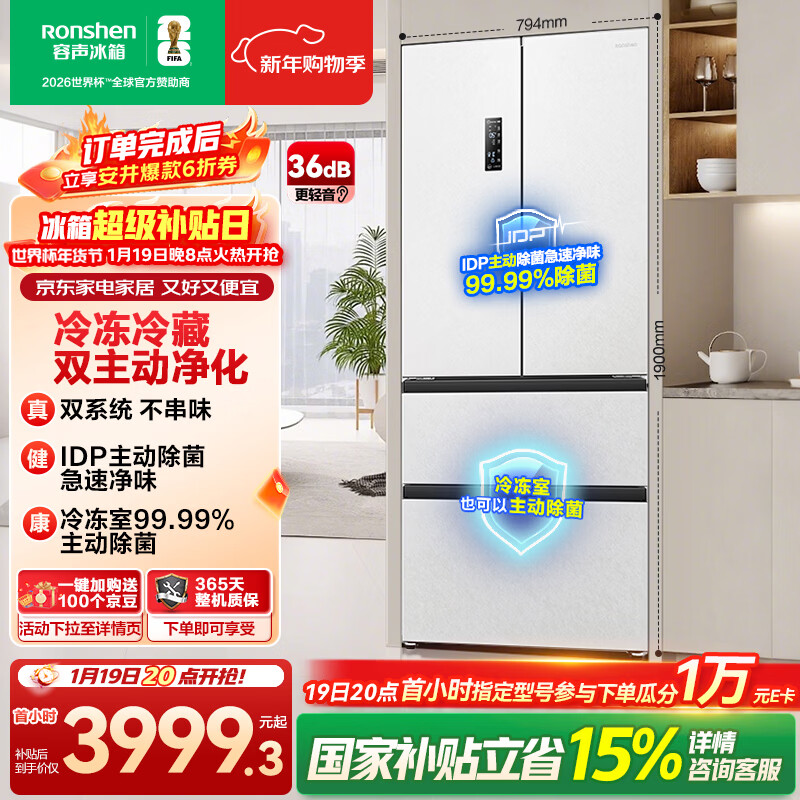 自营容声双净526L法式多门冰箱pro款双系统循环一级能效风冷无霜大容量以旧换新BCD-526WD15MPA国家补贴