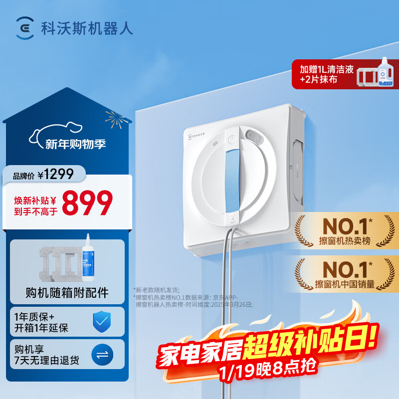 自营科沃斯擦窗机器人全新W1S升级版科沃斯擦玻璃机器人魔镜同款自动擦玻璃喷水恒湿擦窗家用高层户外擦窗