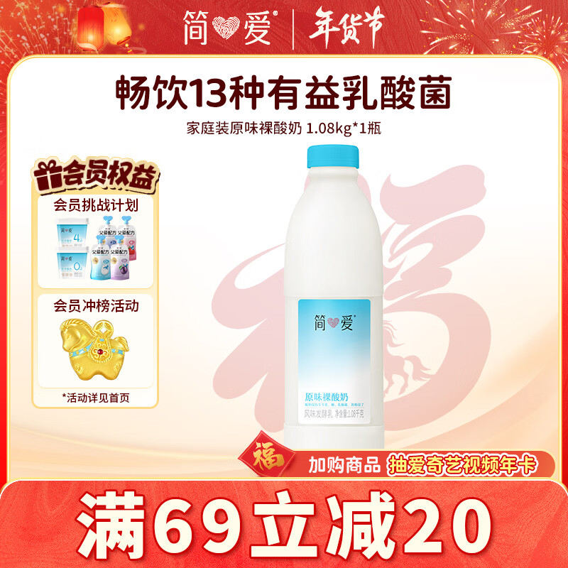 自营简爱原味裸酸奶 1.08kg*1瓶 家庭装大桶酸奶 生牛乳发酵 乳酸菌早餐奶