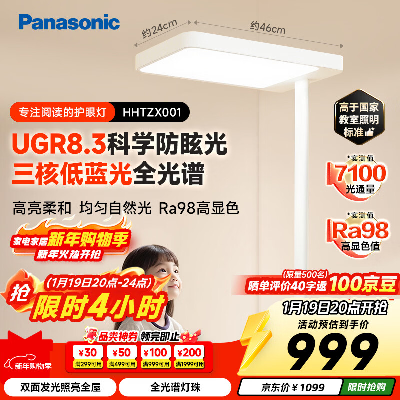 自营松下(Panasonic)立式护眼灯 适阅900 全光谱100W 大路灯 儿童学习阅读台灯