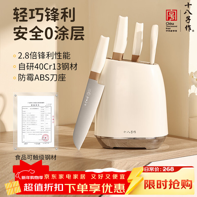 旗舰店十八子作厨房刀具菜刀套装切菜切肉水果刀砍骨刀具套装阳江十八子菜刀家用 小幸运六件套【SL2510】