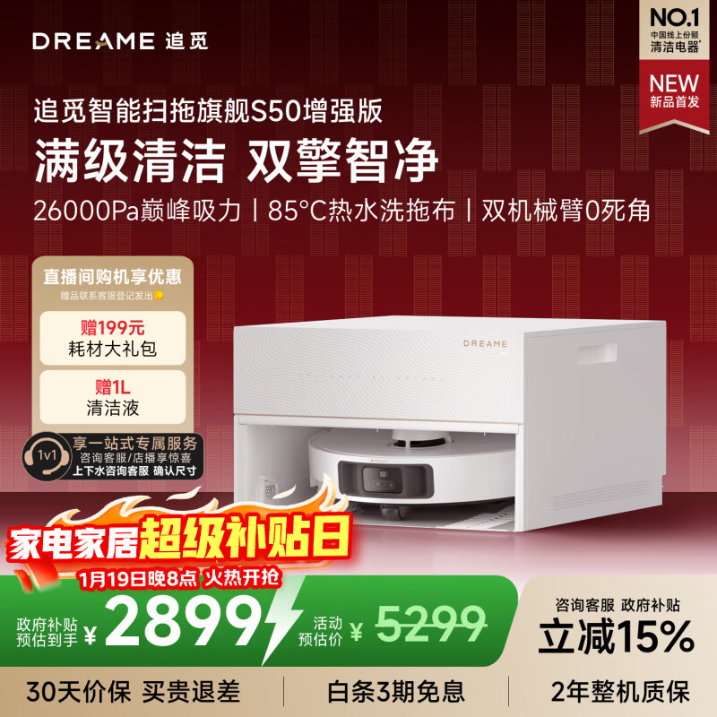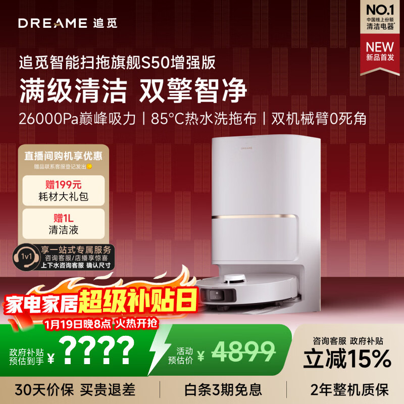 自营追觅S50增强版扫地机器人扫地洗地机吸洗拖扫拖一体自动清洗全自动机器人上下水版
