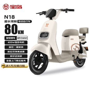 自营宝岛电动自行车新款N18锂电48V24Ah星恒锂电长续航80km豪华外观代步首选 物语灰