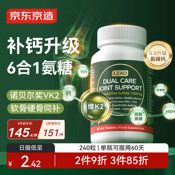自营J.ZAO 京东京造氨糖软骨素钙片240粒 升级六合一维生素DK补钙大绿瓶