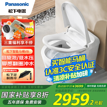 自营松下(Panasonic)智能马桶V8i回旋泡 0触脚感翻圈冲水无惧低压坑距可调坐便器