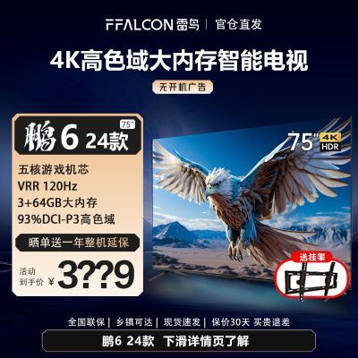 TCL雷鸟电视75英寸 鹏6 24款 3+64G大内存 4K超高清 五核游戏机芯