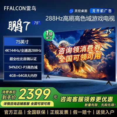 FFALCON雷鸟 75英寸 75鹏7 288Hz高刷 4+64GB大内存 游戏智能电视