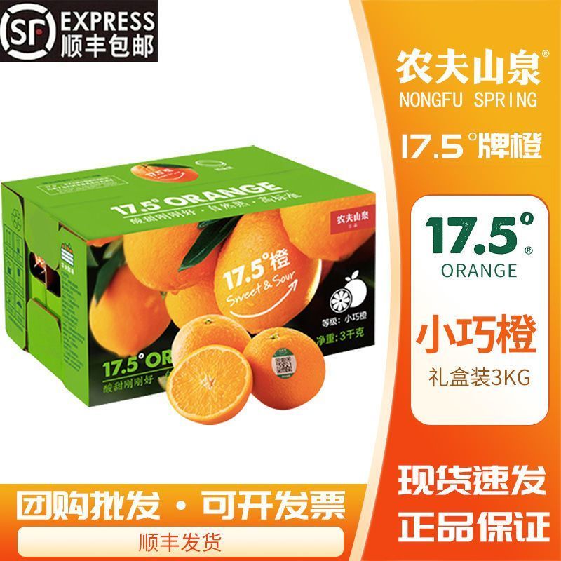 百亿补贴【5人团】农夫山泉17.5°橙子小巧橙3KG 赣南脐橙当季新鲜水果礼盒