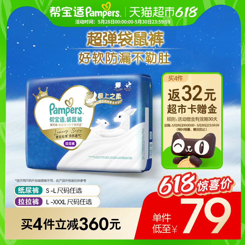 【全新加量装】帮宝适袋鼠裤纸尿裤拉拉裤S-XXL超薄防漏尿不湿