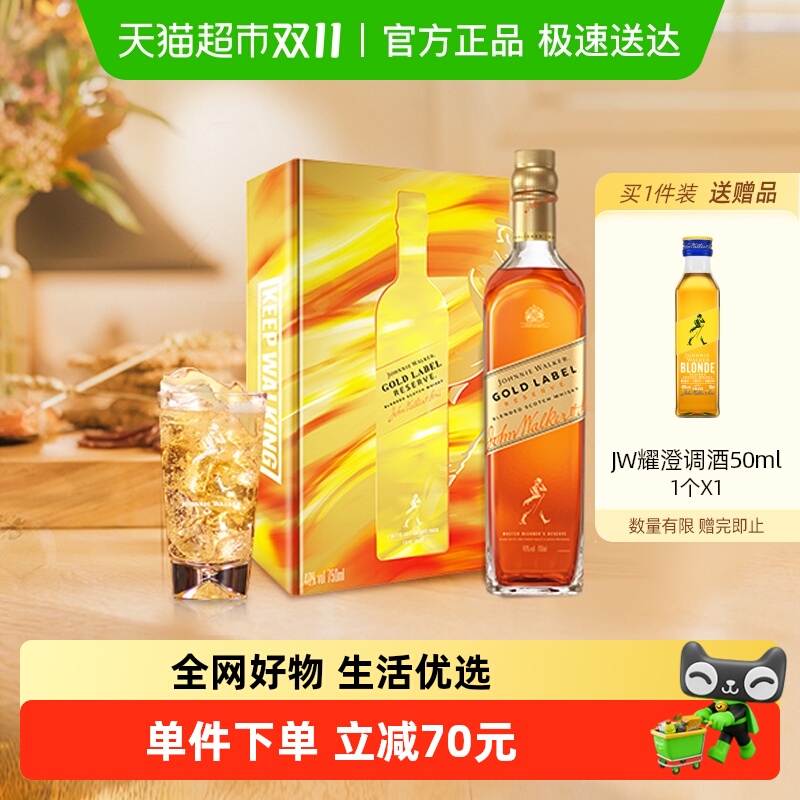 【节日礼盒】尊尼获加金牌苏格兰威士忌750ml送水滴杯洋酒烈酒