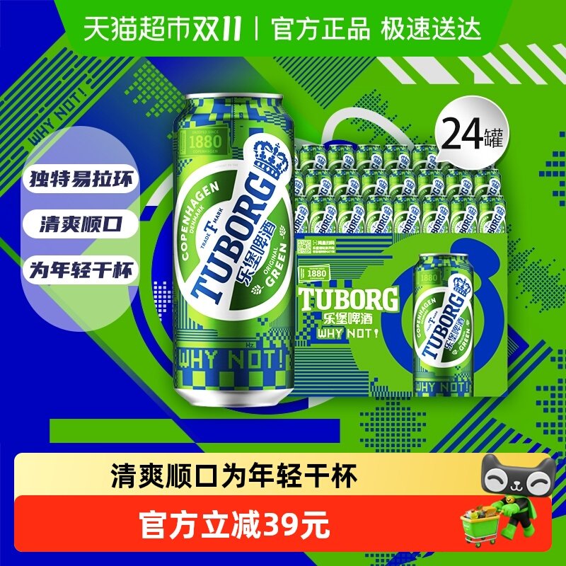 乐堡Tuborg啤酒500ml*24罐嘉士伯清爽型拉格小麦啤酒整箱装
