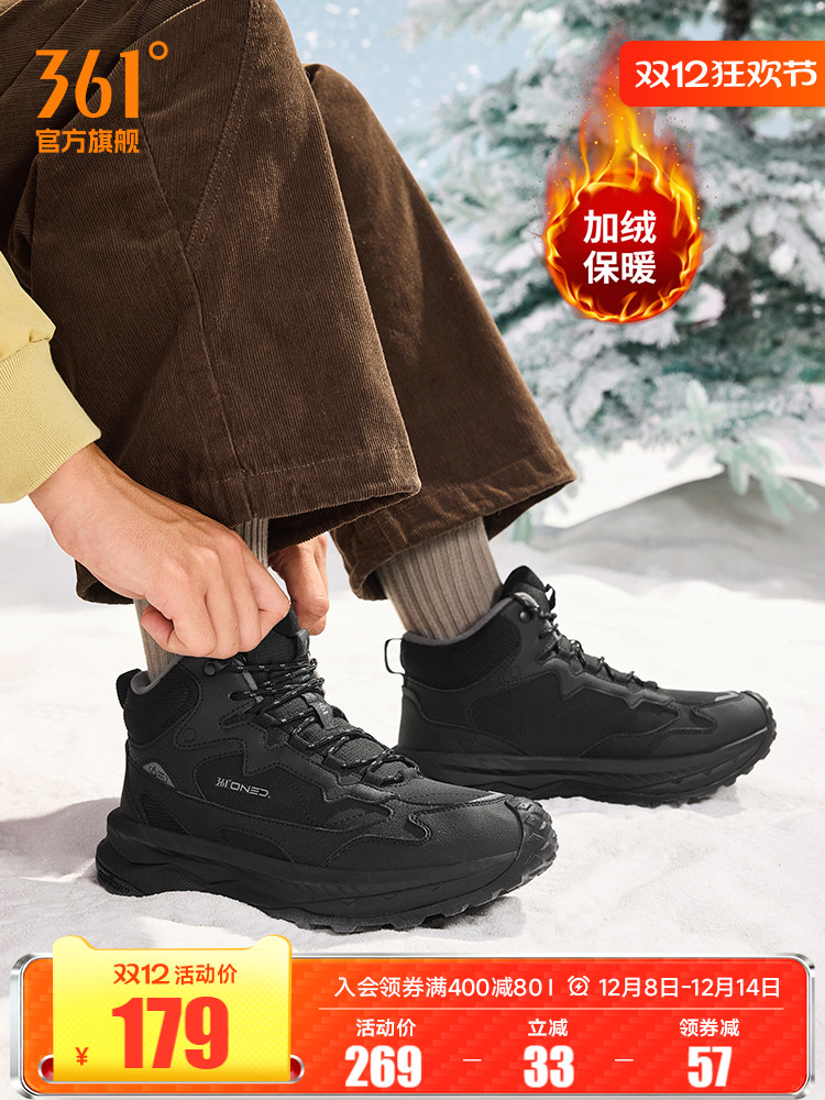 旗舰店川野361运动鞋男鞋冬季加绒保暖高帮大棉鞋防水防滑休闲鞋子男