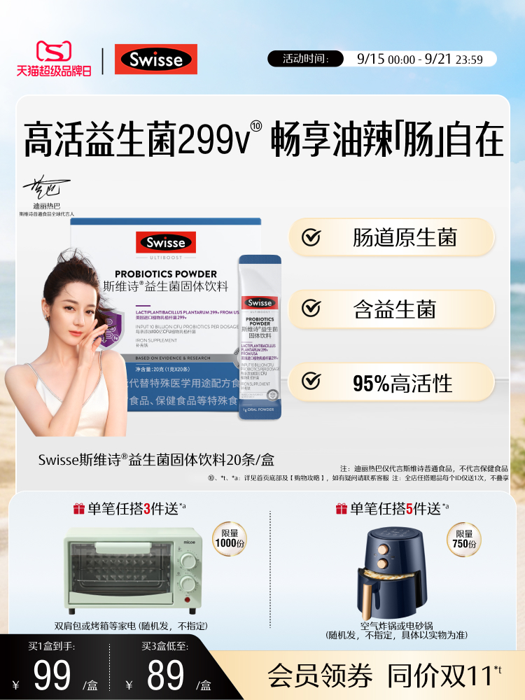 旗舰店【同价双11】Swisse斯维诗299v肠道益生菌粉益生元肠胃消化油辣菌