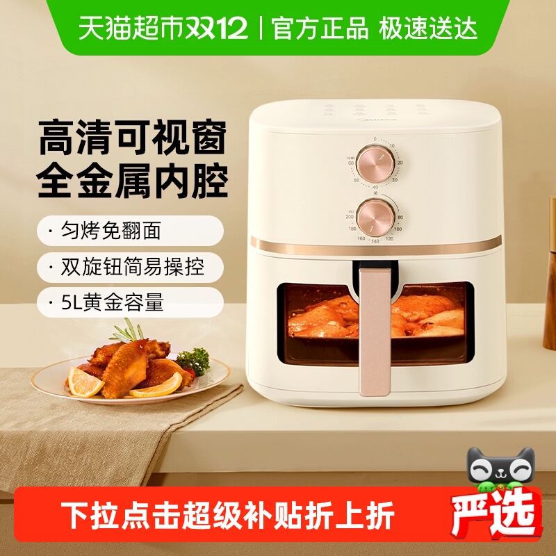 美的空气炸锅电炸锅家用智能大容量可视免翻面多功能下拉详情优惠