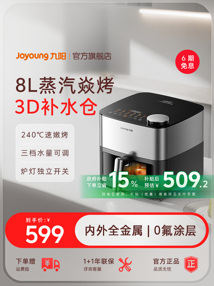 旗舰店九阳空气炸锅家用新款大容量双热源免翻面可视电炸锅电烤箱烹饪机