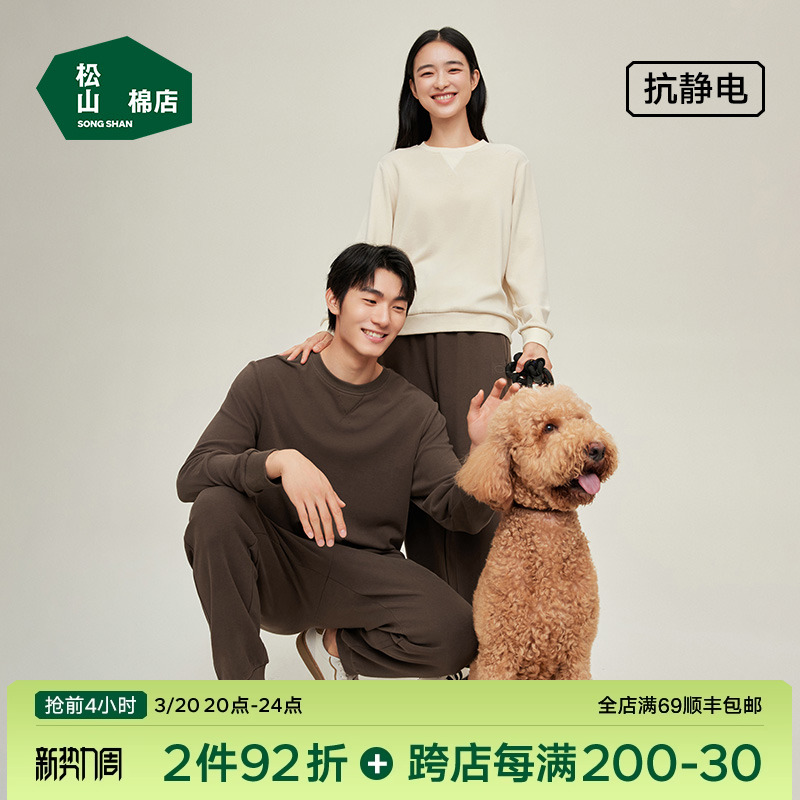 旗舰店松山棉店绒绒棉情侣家居服柔软透气防静电可外穿卫衣裤子秋冬新款