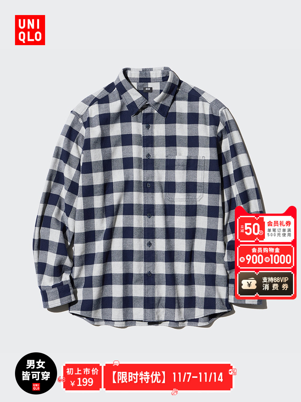 旗舰店优衣库男女装法兰绒格子衬衫长袖衬衣薄外套470187