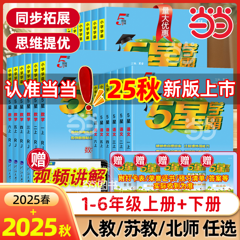 旗舰店2025秋新版小学五星学霸一二年级三年级四4五5六上册下册5星数学语文英语人教版北师江苏教版教材专项提优大试卷课时作业经纶