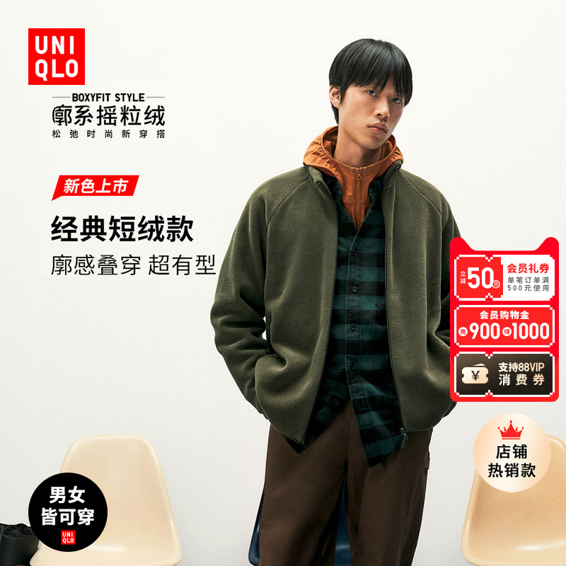旗舰店优衣库男装女装摇粒绒拉链茄克/长袖外套夹克25秋冬新款479793