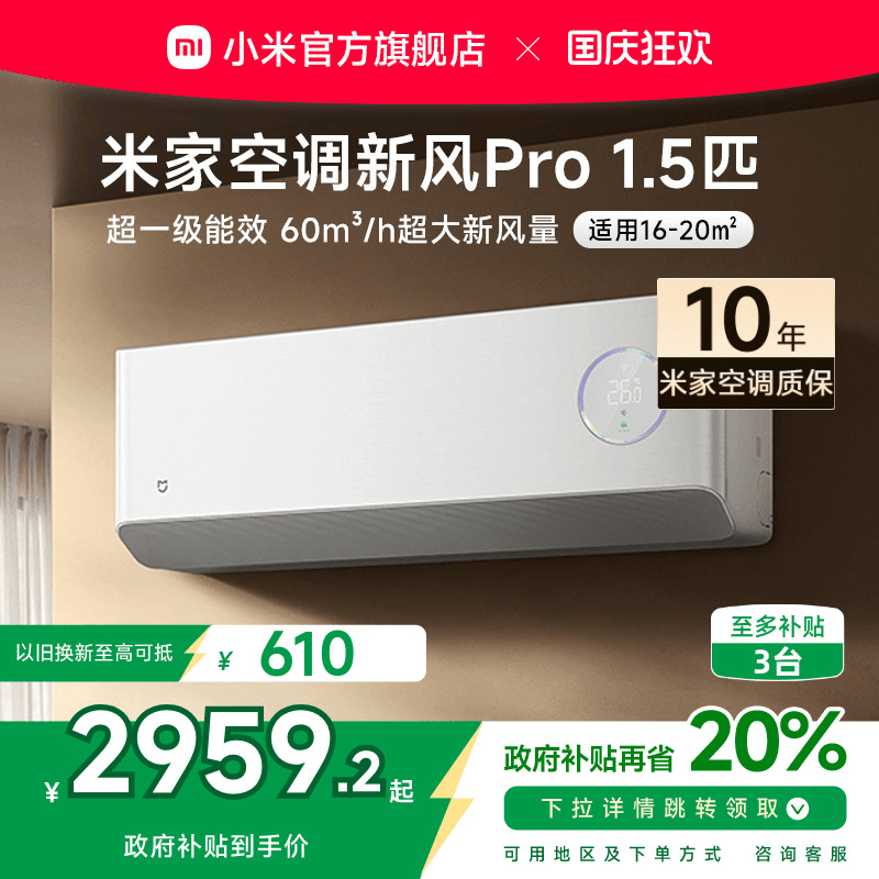旗舰店小米米家空调新风Pro1.5匹银白超一级能效冷暖卧室挂机变频智能
