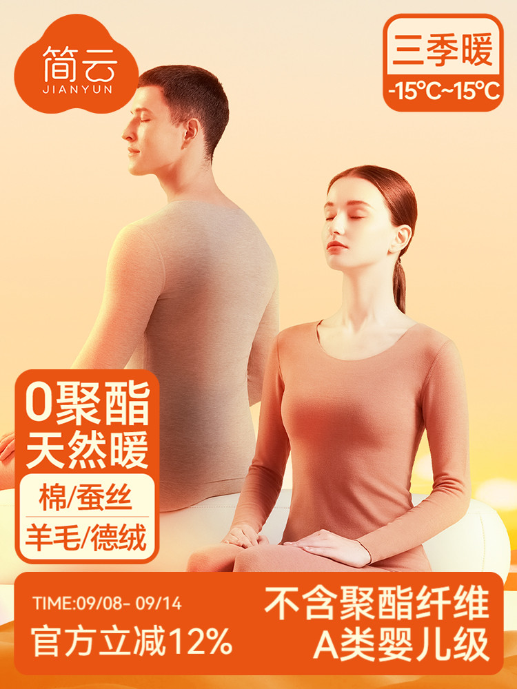 旗舰店简云羊毛蚕丝德绒保暖内衣女无痕发热加绒秋衣秋裤男士套装冬季HD