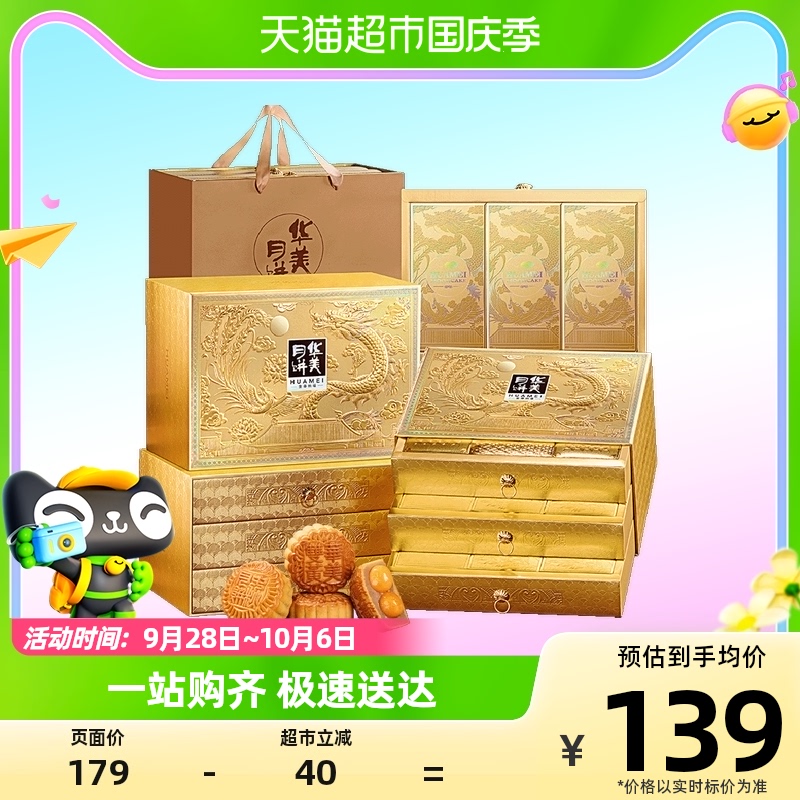 华美金尊纳福1100g广式月饼17饼7味三层月饼礼盒中秋送礼糕点