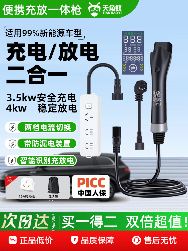 百亿补贴新能源汽车随车充电放电一体枪便携智能二合一通用比亚迪排插放电