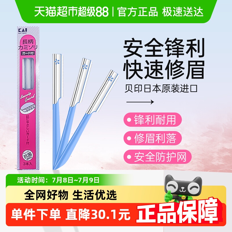 kai/贝印日本原装进口修眉刀刮眉刀初学者安全防刮伤修眉工具3把