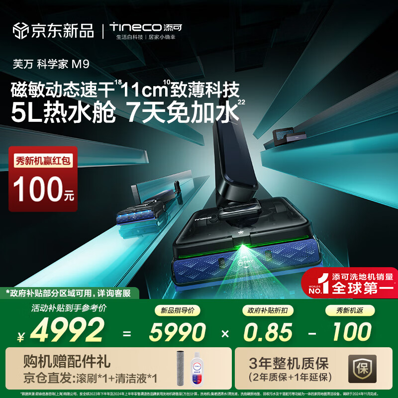 自营添可芙万科学家M9 AI双向助力【磁敏动态速干 净味除菌 7天免加水】躺平0缠毛洗地机自清洁拖地机器人