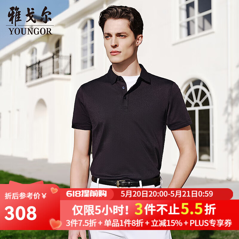 旗舰店雅戈尔(YOUNGOR)短袖POLO男翻领可机洗桑蚕丝混纺面料柔软舒适商务配搭2025新品 藏青VSZS513118FFA L (推荐135-150斤)