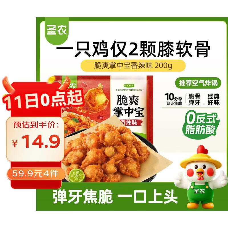 自营圣农爽脆掌中宝200g香辣味 膝软骨 烧烤烧鸟串夜宵下酒菜 空气炸锅