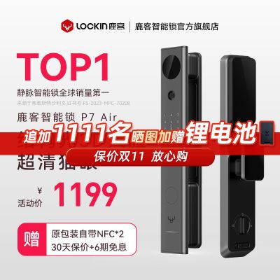 百亿补贴鹿客人脸识别新款P7Air智能密码锁指纹锁门锁高清猫眼全自动