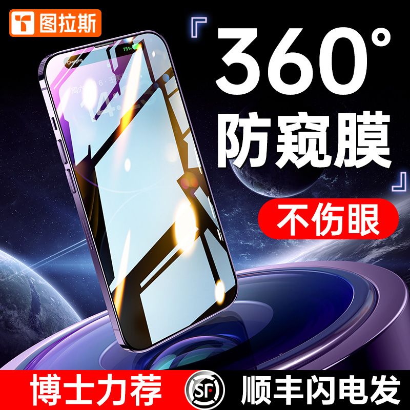旗舰店【360度防窥】图拉斯适用苹果14钢化膜13promax手机全屏防窥膜pro