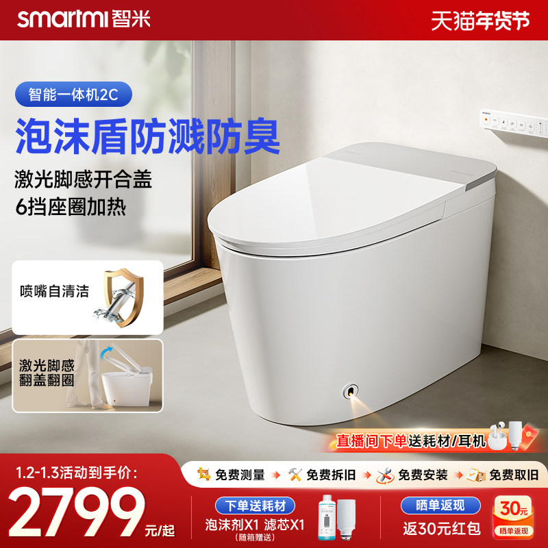 旗舰店【政府补贴】智米全自动智能马桶泡沫盾无水压限制家用座便器2C
