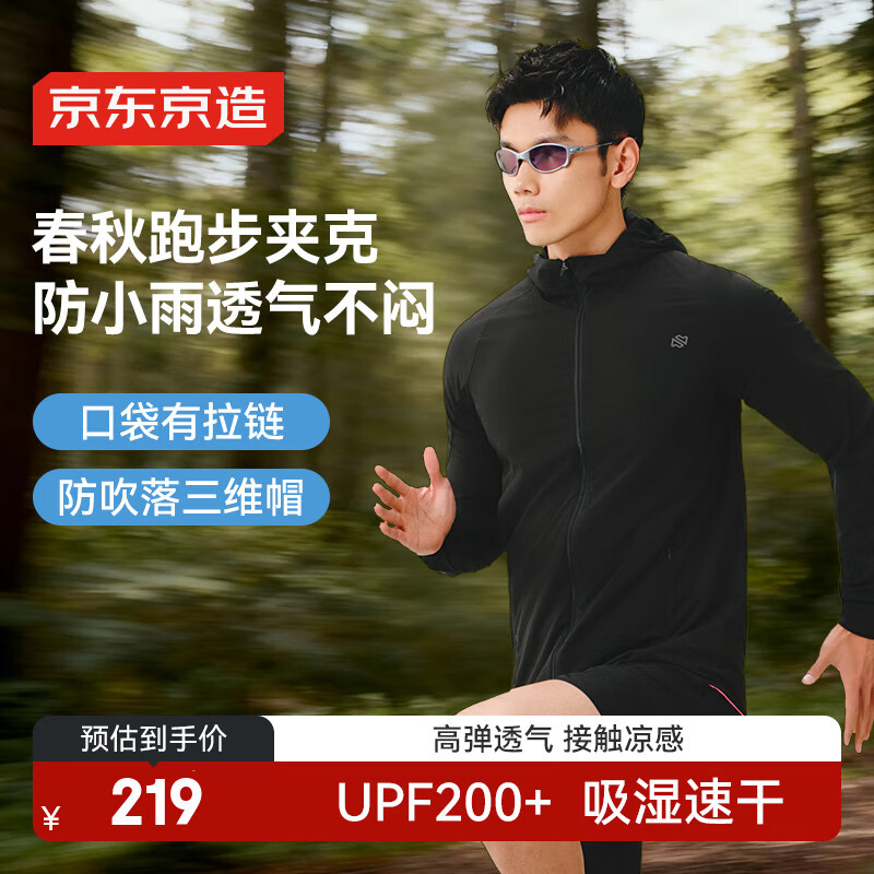 自营京东京造超轻三防跑步运动夹克外套男秋季户外防泼水透气运动上衣 黑色XL