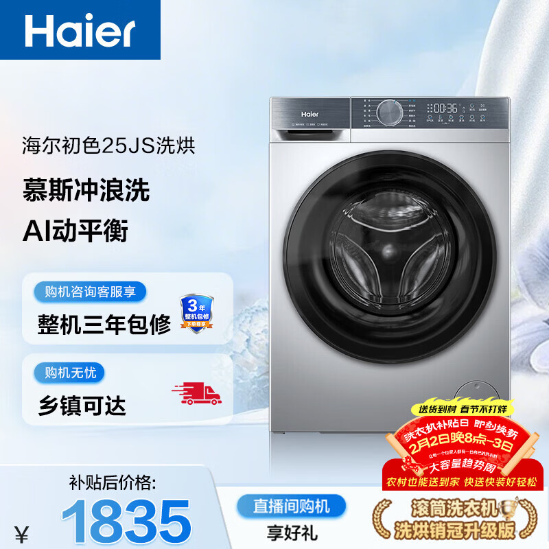 自营海尔(Haier)滚筒洗衣机全自动带烘干一体 10公斤超薄家用 家电国家补贴 京东自营25JS 一级能效以旧换新出租房