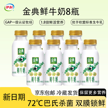 自营伊利金典鲜牛奶 原生全脂 巴氏杀菌低温牛乳235ml*8瓶 源头直发包邮